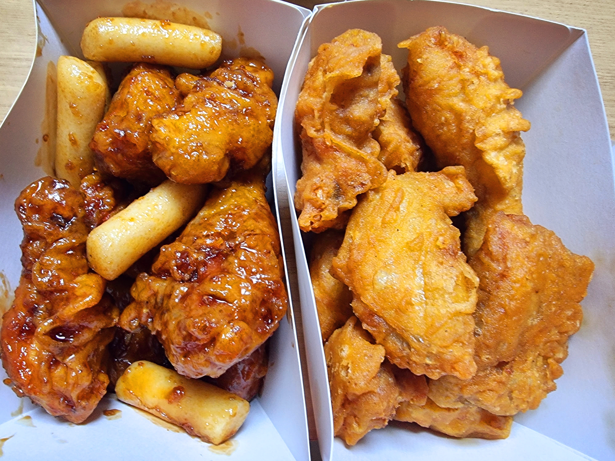 어제는 처갓집 에서 후라이드 간장치킨 을 반반 주문해서 먹었어요