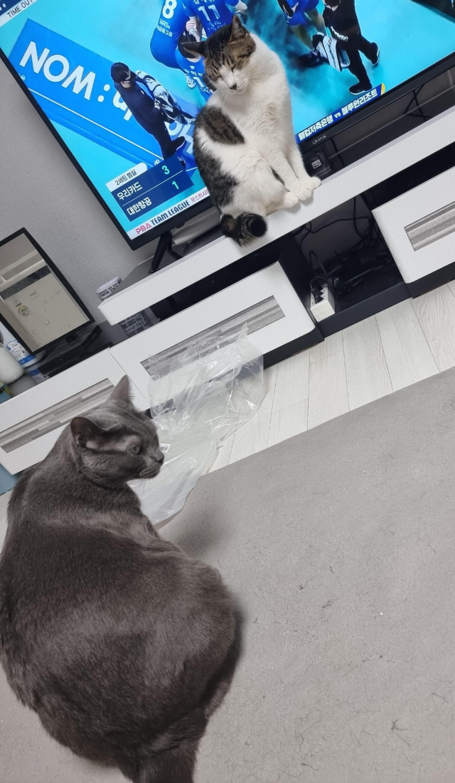 어제저녁 제로가 자꾸 티브이를 가로 맞고 앉아 있어서 찍어 그 상황을 담아 보았어요