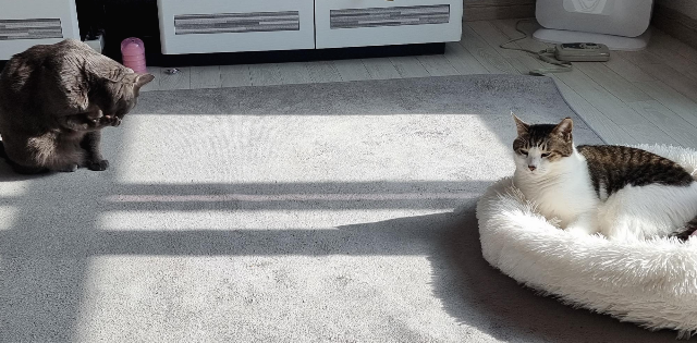 햇살과 함께 너무 이쁜 우리 두 냥이 오늘 오후도 행복한 하루 보내세요